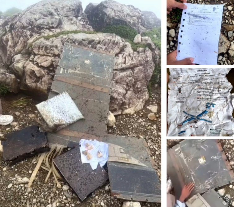 Berselang waktu, beredar di media sosial, penampakan puing-puing yang diduga milik pesawat ATR 42-500 Indonesia Air Transport.