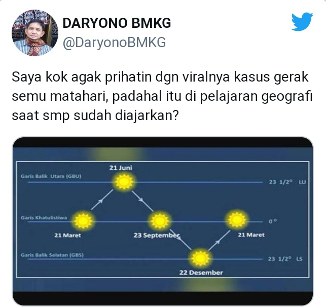 Daryono meyebutkan materi gerak semu Matahari ini masuk mata pelajaran di tingkat sekolah menengah pertama (SMP).