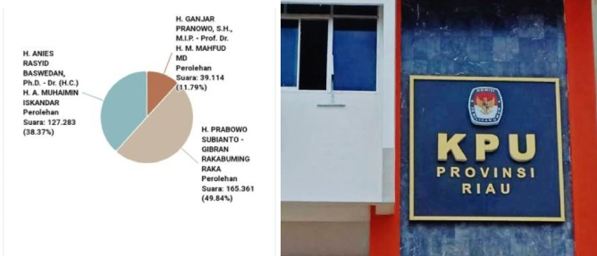 Perhitungan suara masih terus dilakukan, dan per Ahad (18/2/2024), audah masuk data 10580 dari total 19366 TPS se-Riau atau 54,63 persen.