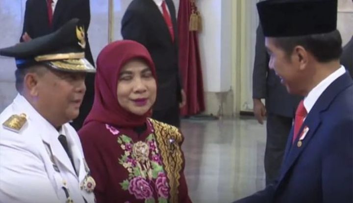 Prosesi pelantikan dilanjutkan dengan penandatanganan berita acara. Dan kemudian, Jokowi menyalami dan memberikan ucapan selamat kepada Edy Natar.