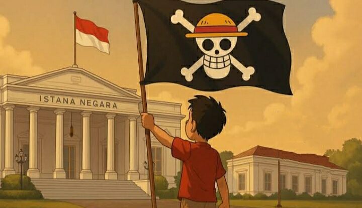 ARASYNEWS.COM – Menjelang peringatan HUT RI ke-80, media sosial Indonesia diramaikan oleh sebuah gerakan simbolik yang tak biasa. Pengguna media sosial di Indonesia dan juga masyarakat di dunia nyata banyak yang mengibarkan bendera bajak laut Jolly Roger Topi Jerami dari anime One Piece sebagai bentuk protes. Ini seakan menggantikan pengibaran Bendera Merah Putih pada bulan Agustus 2025.