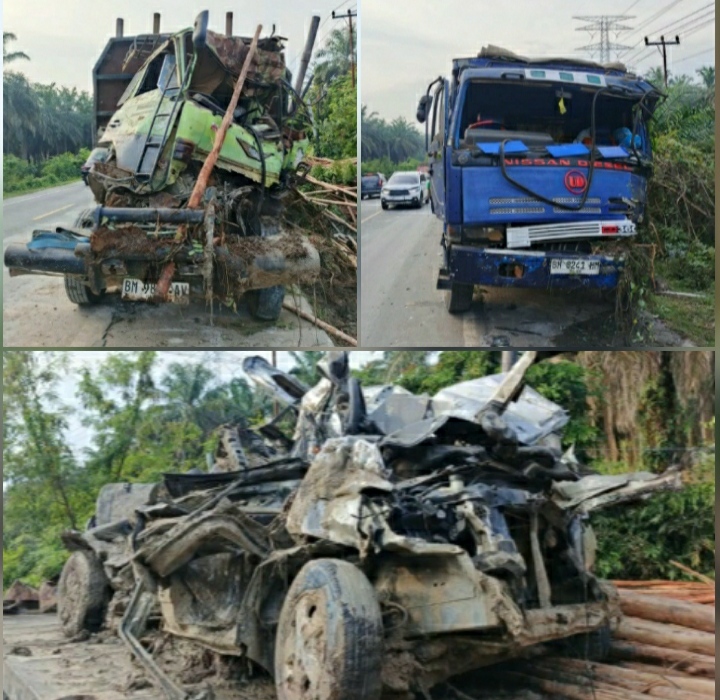 Lakalantas ini melibatkan dua unit kendaraan berat, yakni truk tronton Nissan BH 8241 HN, truk balak Hino BM 9887 AV, dan ditambah satu unit mobil minibus Daihatsu Grand Max D 1239 ZB.