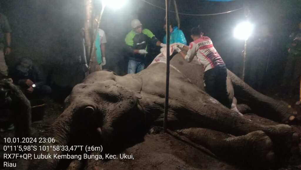 ARASYNEWS.COM – Seekor gajah Sumatera (Elephas maximus sumatrensis) ditemukan mati di Kabupaten Pelalawan provinsi Riau pada Rabu, 10 Januari 2024. Kematian ini disebabkan karena gajah keracunan dan perburuan gading.