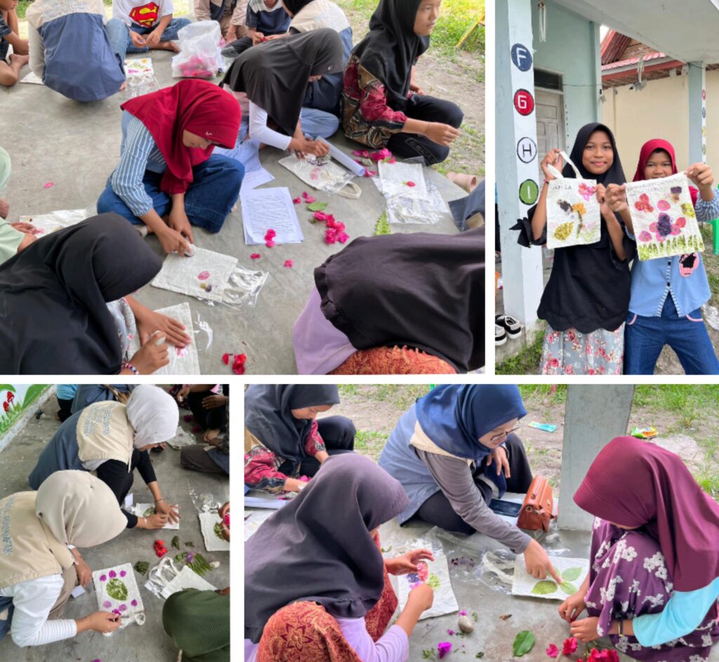 “Kegiatan diawali dengan pengenalan konsep dan teknik ecoprint. Anak-anak diperkenalkan pada berbagai jenis daun dan bunga yang dapat digunakan, serta diajak mengamati bentuk, tekstur, dan warna alami tumbuhan yang ada di sekitar mereka,” terangnya.