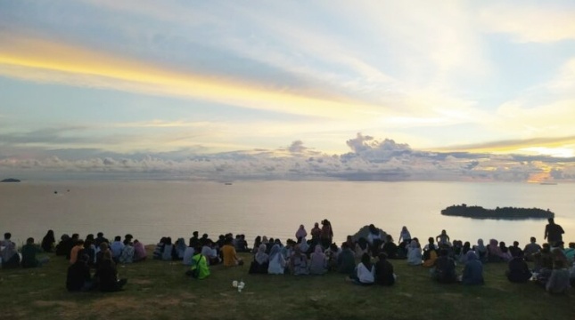 Di sini kamu dapat menyaksikan keindahan matahari terbenam dari ketinggian serta pemandangan pulau-pulau kecil di sekitar Pantai Air Manis.