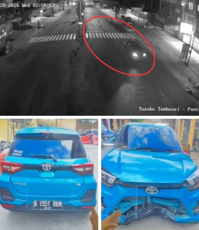 Identitas pelaku, yakni seorang perempuan inisal SH (28), mengemudikan mobil Toyota Raize berwarna biru, berpelat B 1557 RKM.