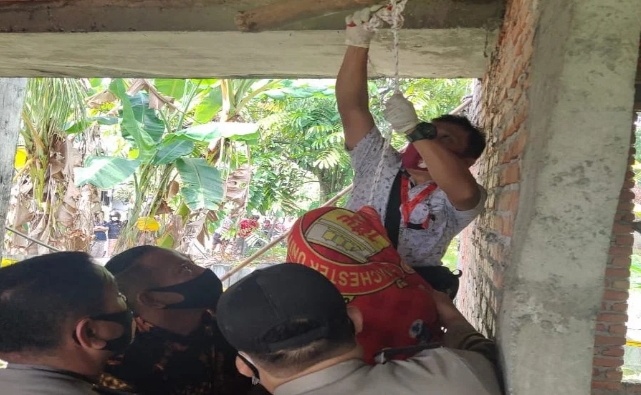 Dari lokasi kejadian turut diamankan barang bukti berupa seutas tali, sebuah ban bekas, satu batang kayu balok, dan satu buah tas jinjing warna hitam. []