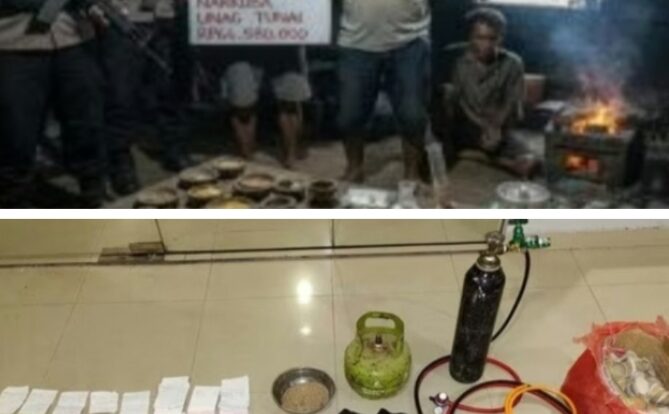 “Penggerebekan dilakukan di beberapa lokasi. Dari lokasi pertama, tim menyita sejumlah barang bukti berupa butiran emas, alat pembakaran, serta perlengkapan lain yang digunakan dalam proses pemurnian emas ilegal,” terangnya.