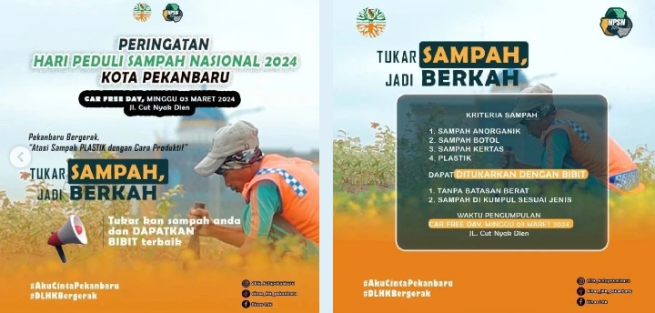 “Ini dalam rangka Hari Peduli Sampah Nasional (HPSN) tahun 2024. Jadi ini menjadi momentum penting dalam menunjukkan komitmen untuk mengatasi permasalahan sampah plastik dengan cara yang produktif di kota Pekanbaru,” jelasnya.