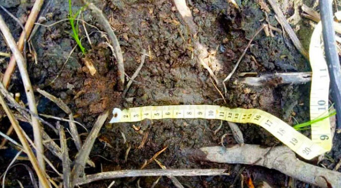 Warga menduga penampakan berwarna hitam dengan ukuran sekitar dua meter dan berbau busuk menyengat seperti bangkai ini adalah sesosok satwa